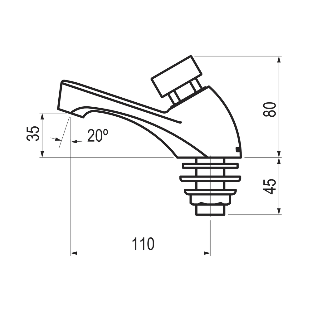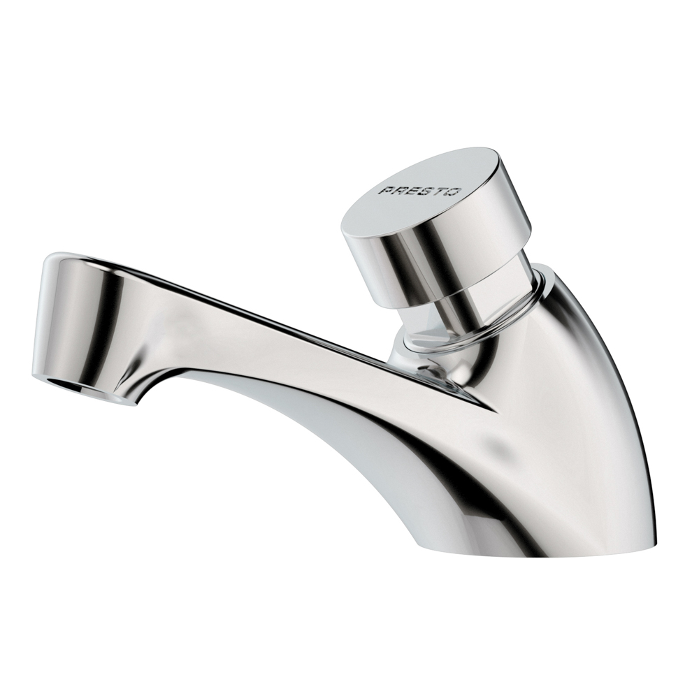 Grifo temporizado de un agua para instalación sobre repisa con cuerpo de latón cromado.