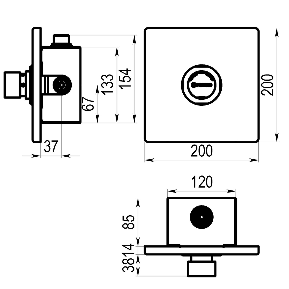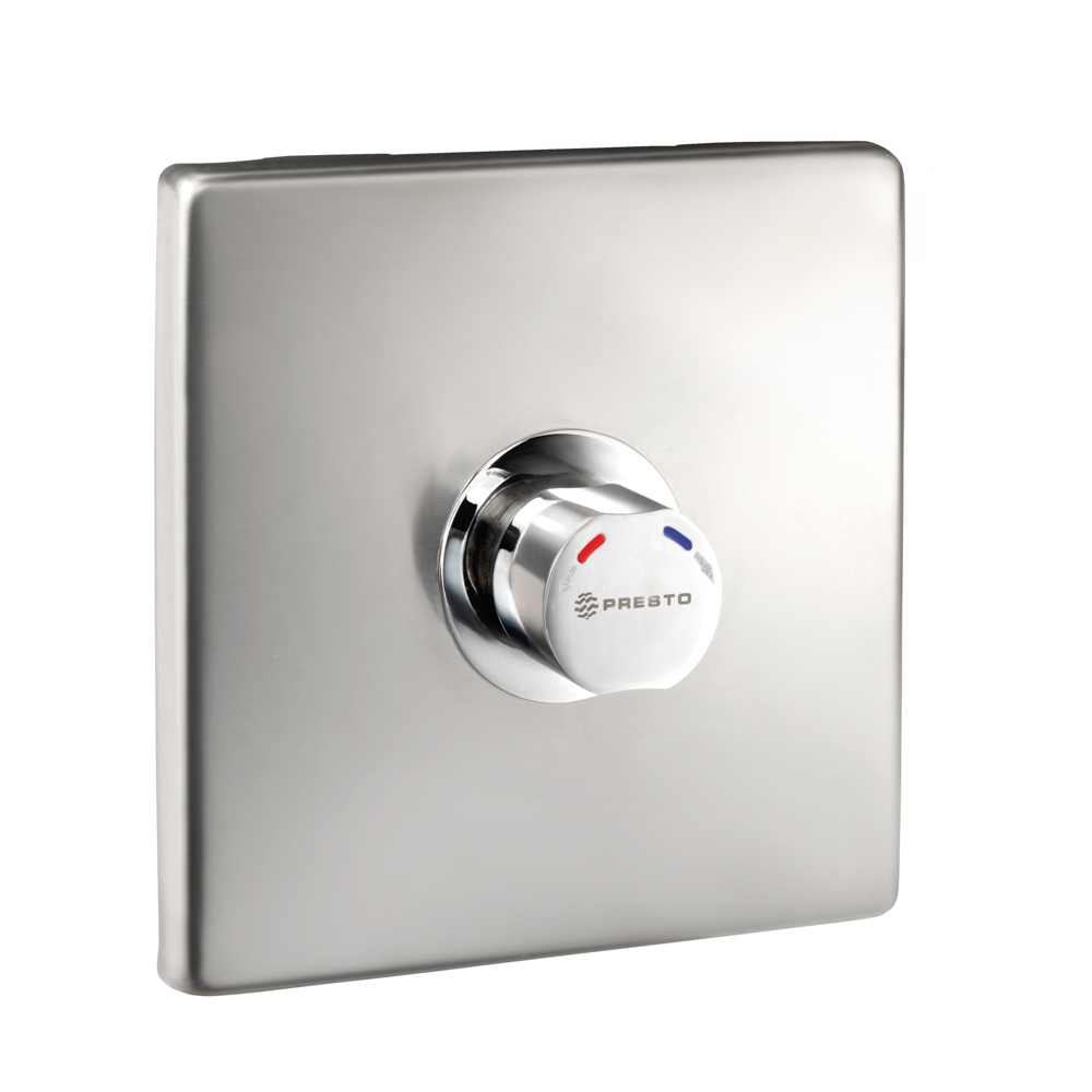 Cuerpo y pulsador en latón cromado, piezas interiores en materiales resistentes a la corrosión e inscrustaciones calcáreas. *Cabeza intercambiable que comprende todo el sistema de temporización. *Válvulas antirretorno incorporadas, que impiden la intercomunicación del agua fría y caliente, según norma EN 1717. *Pulsador con selección de temperatura mediante giro de 180º.*Componentes fabricados en materiales que soportan temperaturas de hasta 70º C, para permitir la realización de desinfecciones térmicas anti legionella. *Dispositivo de seguridad que permite al instalador limitar a 40º C la temperatura del agua caliente, en posición de máxima apertura. *Con placa de acero inoxidable de 180 x 180 mm, con tornillos de fijación y caja de empotrar de diámetro 160 x 70 mm. *Caja de empotrada de ABS. *Peso bruto: 2,580 Kg. *(Los modelos con válvula de vaciado no contienen regulador de caudal).