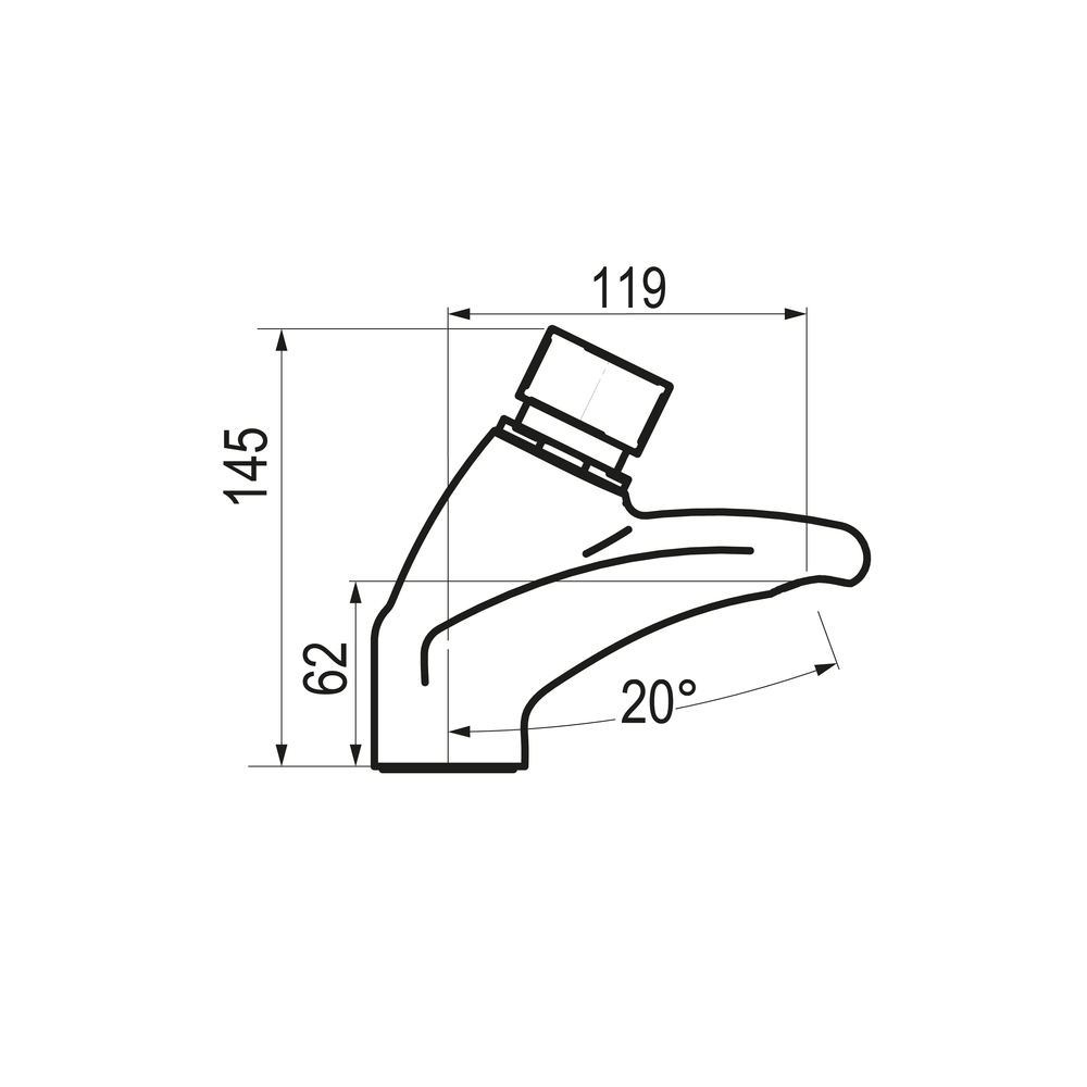 Grifo temporizado mezclador para instalación sobre repisa con cuerpo de latón cromado.