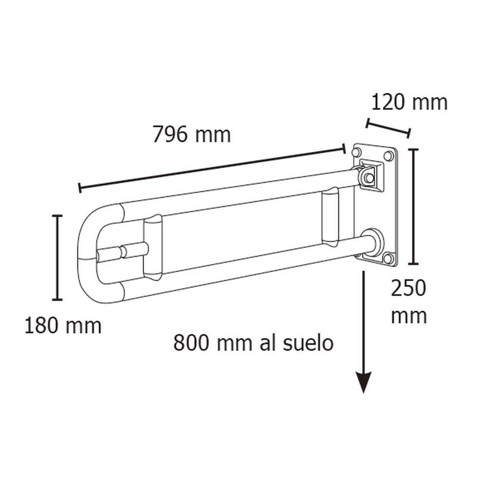 Dimensiones 796 mm. Base de apoyo a la pared de 250x120 mm. Con porta papel higiénico. Colores disponibles blanco,azul o gris. DiseñosDiseños de alta calidad gracias a la ligereza y robustez del aluminio junto con el calor y el agradable tacto del nylon. Sistema de fijación oculto bajo los embellecedores para evitar el vandalismo y mejorar la estética. Ultraligeras,irrompibles e inalterables. Diámetro exterior: 35 mm.