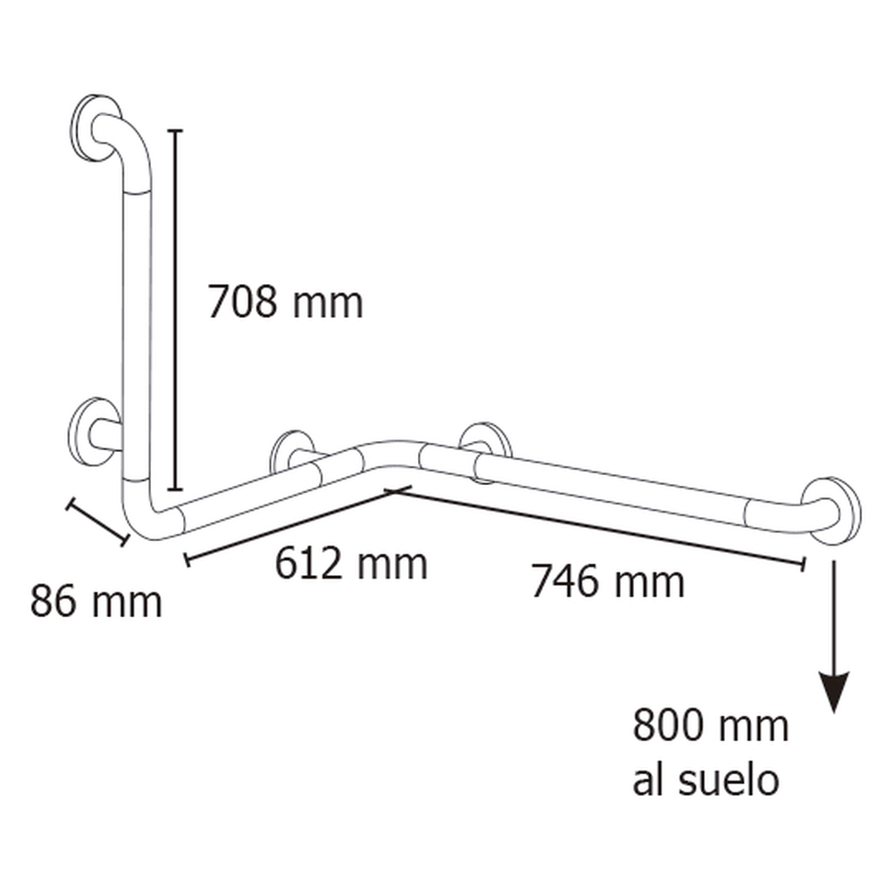 Barra en ángulo para conjunto ducha. Preparada para colocación a derecha o izquierda.