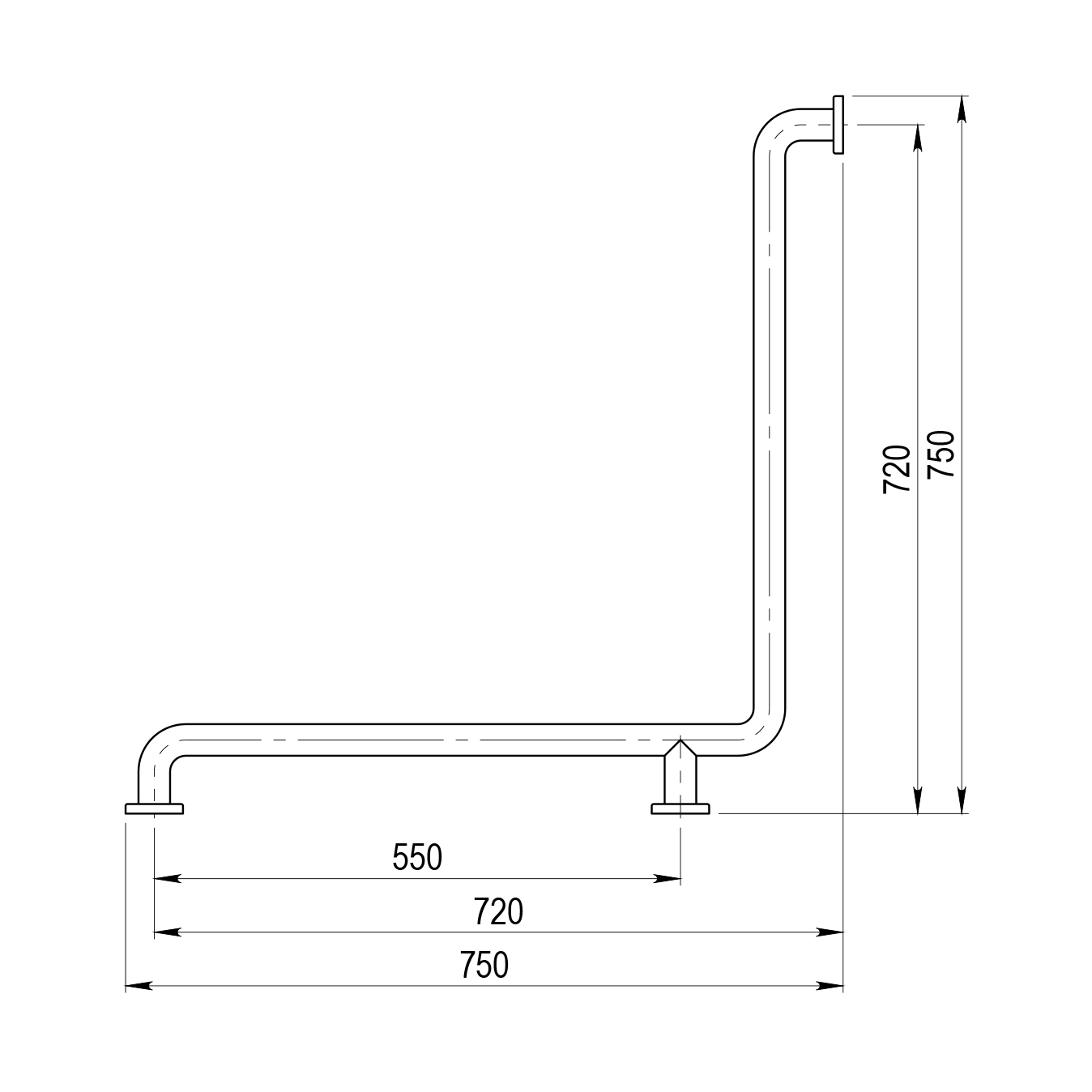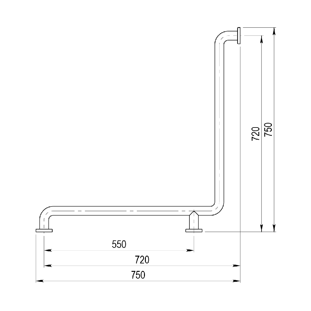 Barra de apoyo ángulo horizontal inox blanco