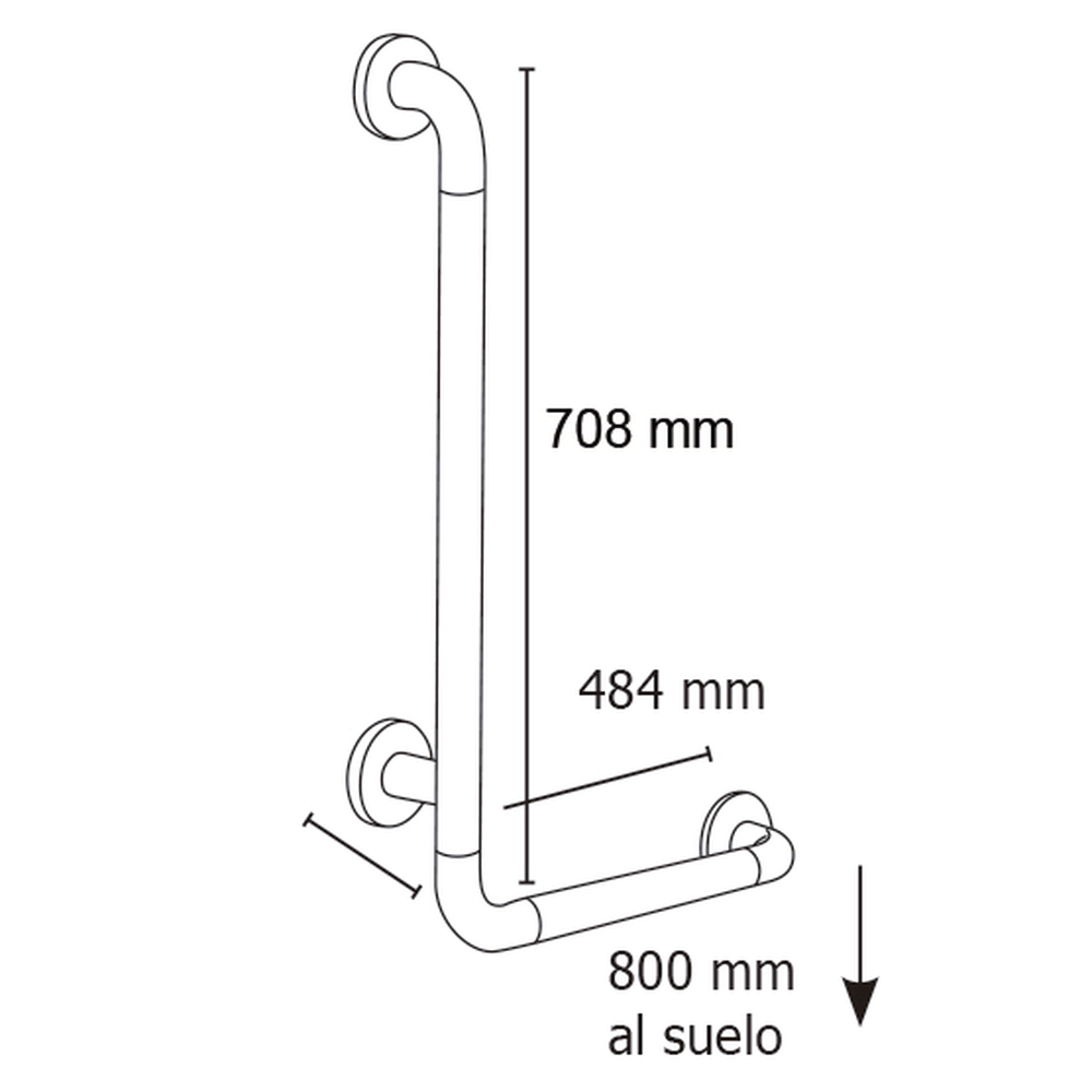 Barra en ángulo para ducha. Preparada para colocación a derecha o izquierda.