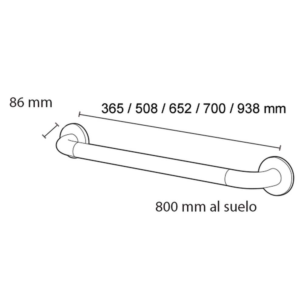 Dimensiones 652 mm. Colores disponibles blanco,azul o gris. Diseños de alta calidad gracias a la ligereza y robustez del aluminio junto con el calor y el agradable tacto del nylon. Sistema de fijación oculto bajo los embellecedores para evitar el vandalismo y mejorar la estética. Ultraligeras,irrompibles e inalterables. Diámetro exterior: 35 mm.