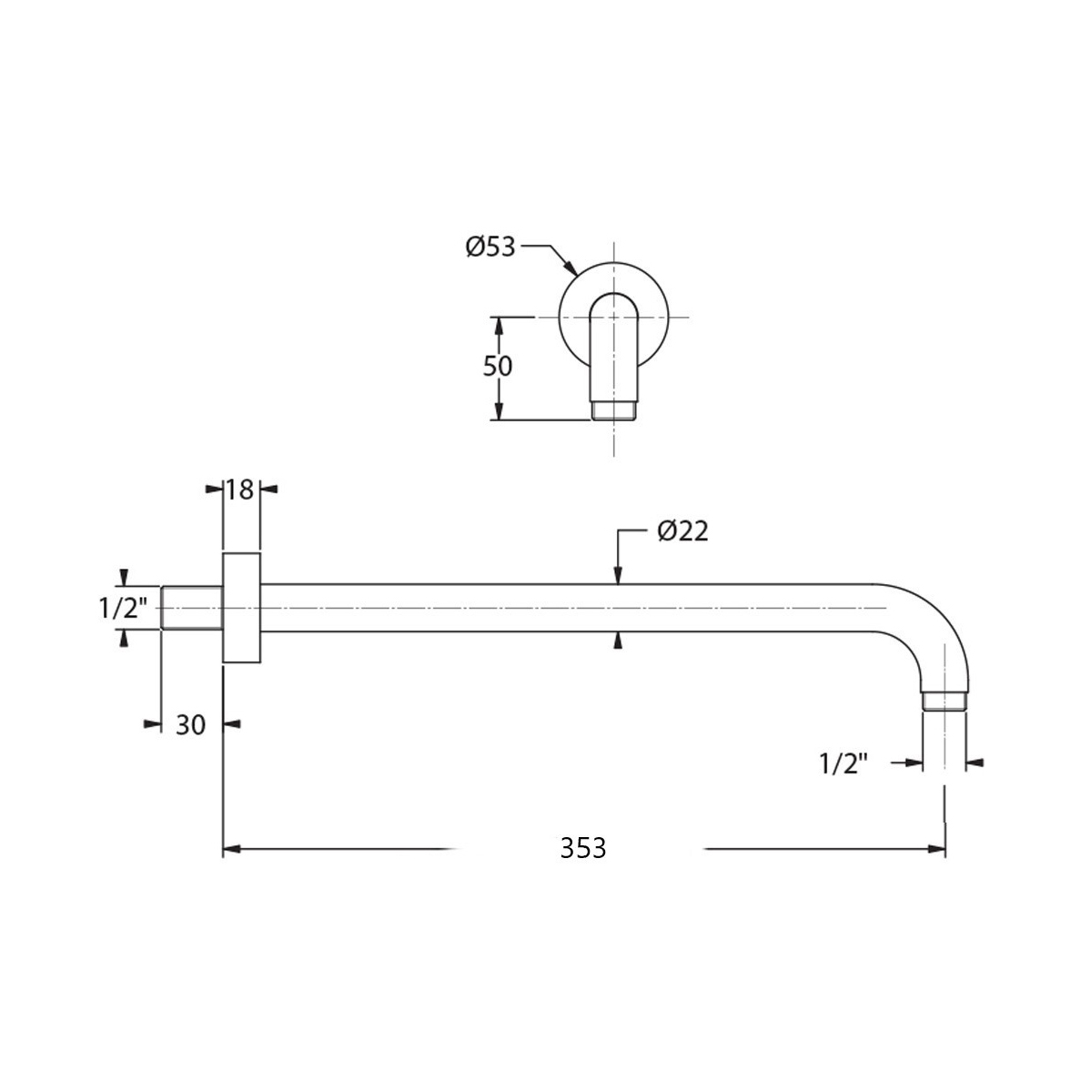 Brazo ducha mural minimalista.