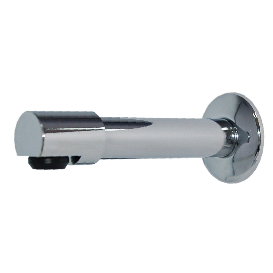 Caño recto para fijación sobre muro en latón cromado con rompeaguas.