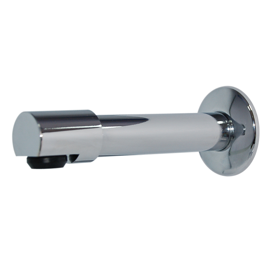 Caño fijo recto para fijación a través de muro en latón cromado con rompeaguas.