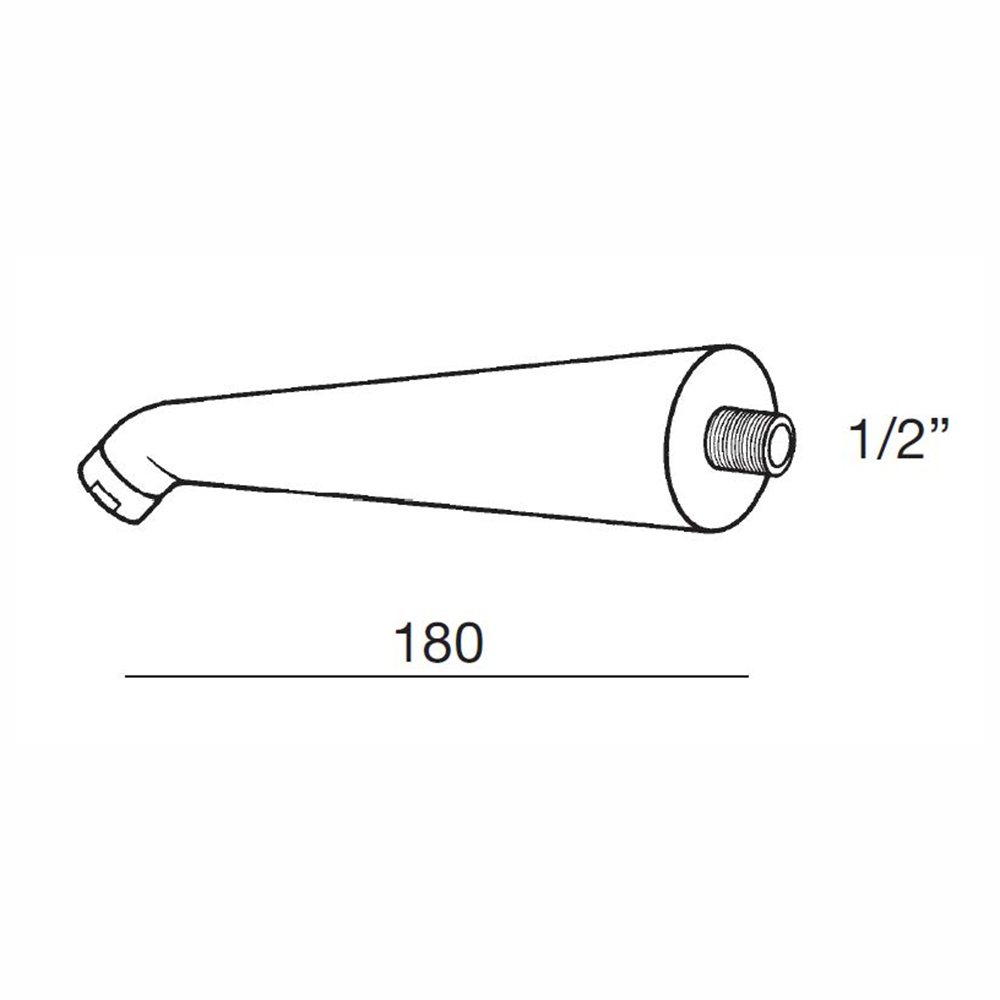 Caño mural. Acabados existentes: cromo, blanco y cromo mate. Longitud: 18 cm. Entrada 1/2.