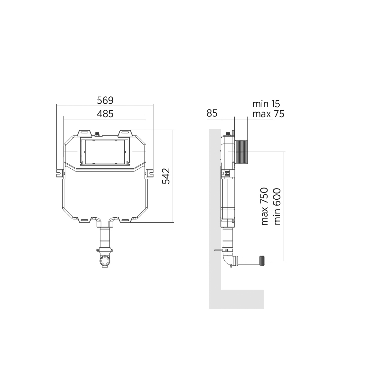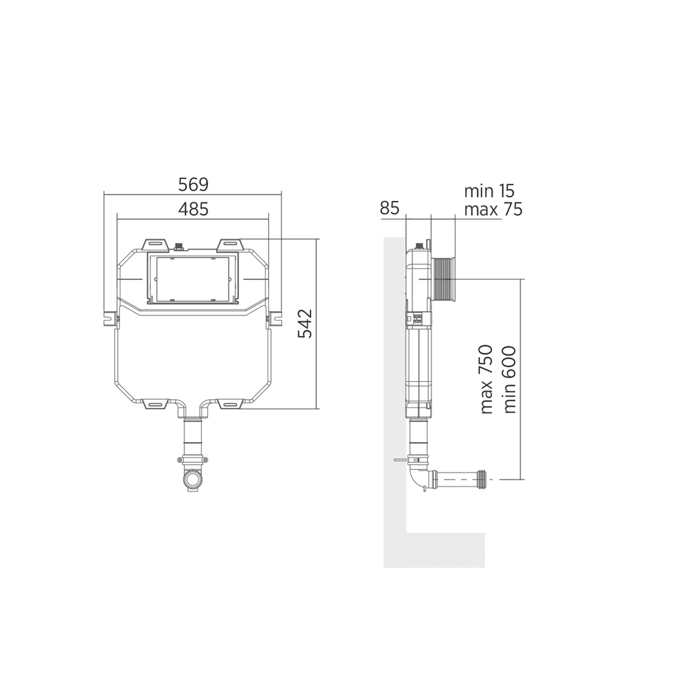 Cisterna empotrada con pulsador de doble descarga para inodoro. Doble descarga regulable a 2/5 L o 3/6 L. Presión de uso recomendada: 0,5 16 bar. Suministrado con: Pulsador de doble descarga y malla de enlucido.