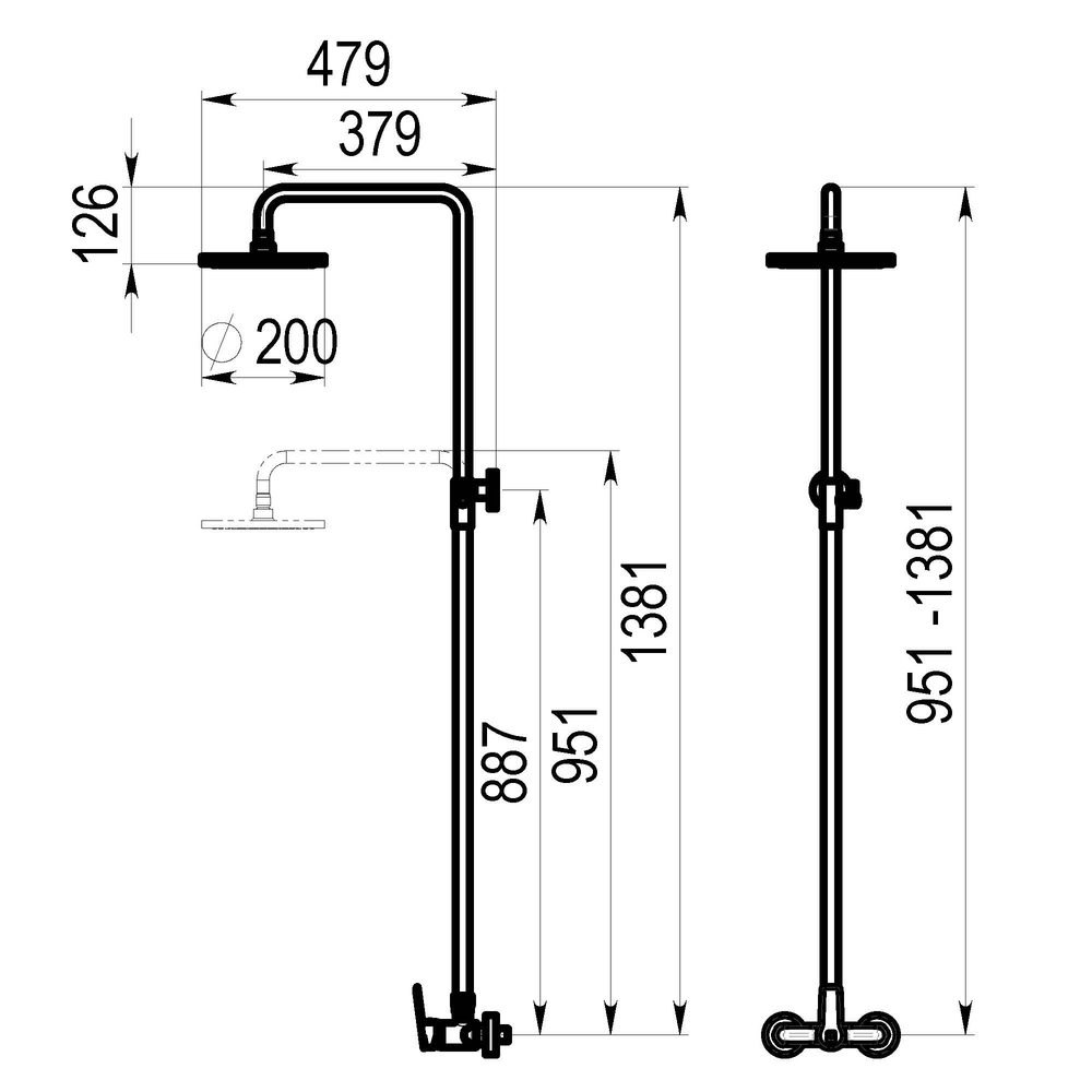 Columna de ducha mezcladora Albos rociador 200 mm