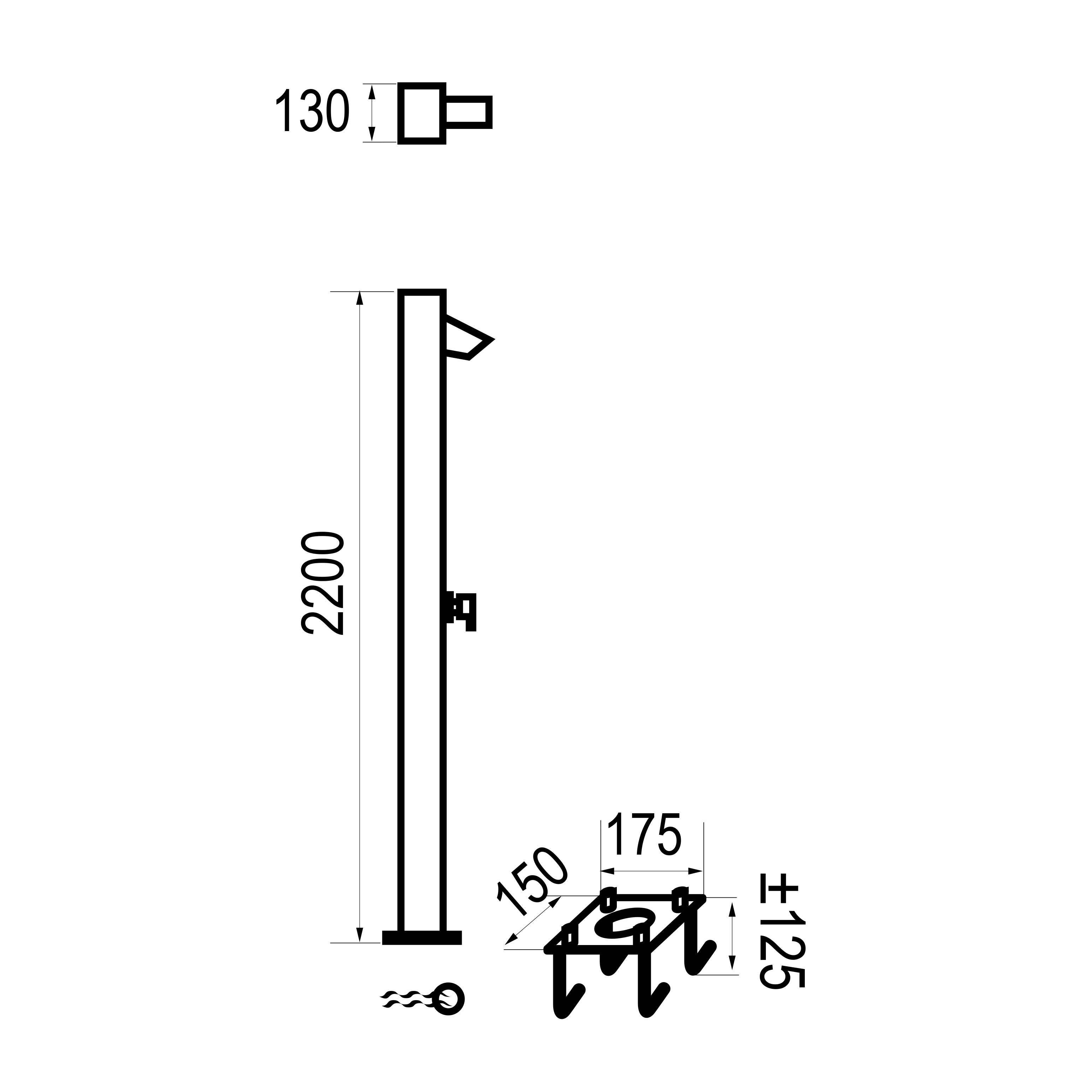 Columna de ducha para jardín 1 agua. Acabado Acero Inoxidable. Cartucho convencional.