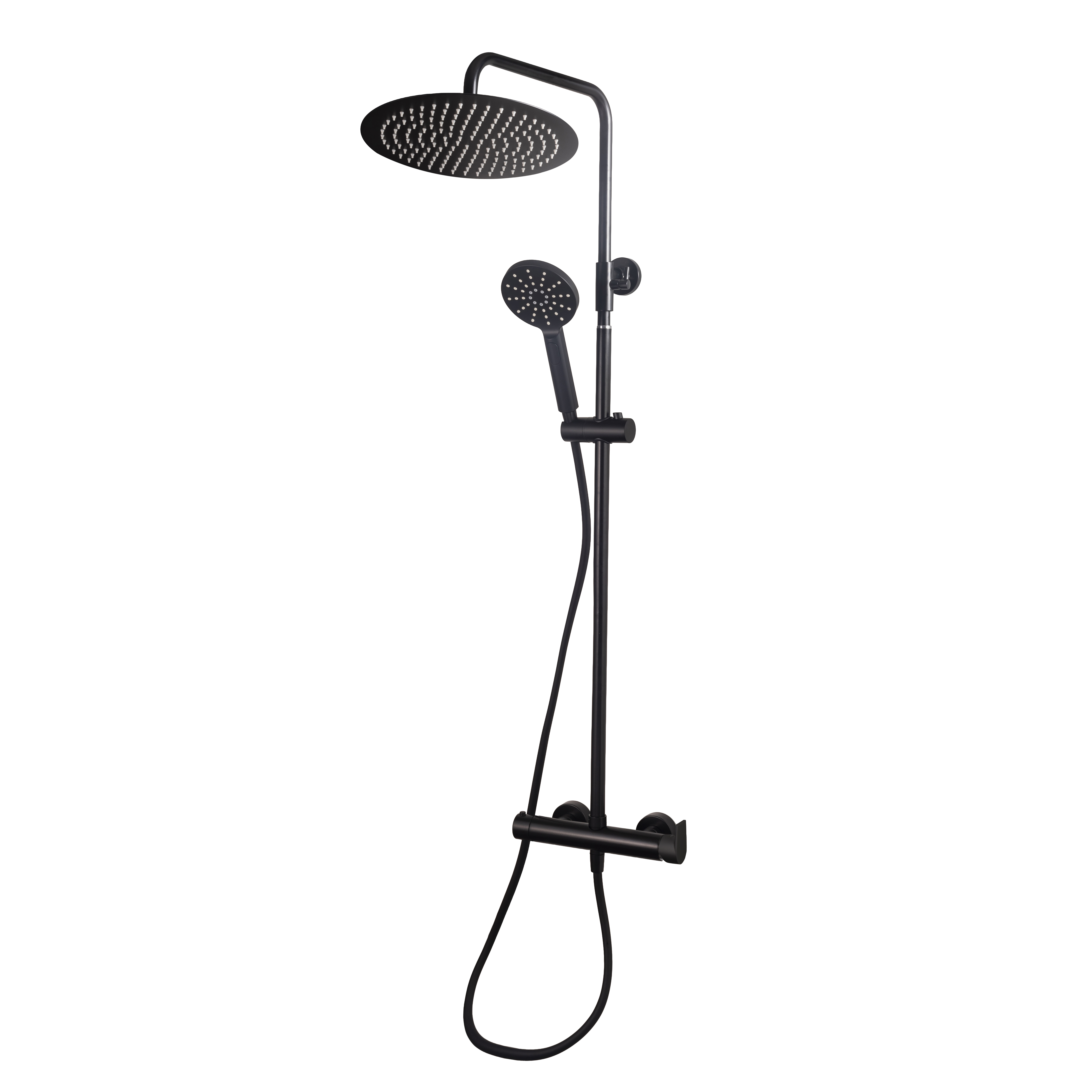 Columna ducha mezcladora Aroha negro rociador 300 mm inox y flexo pvc