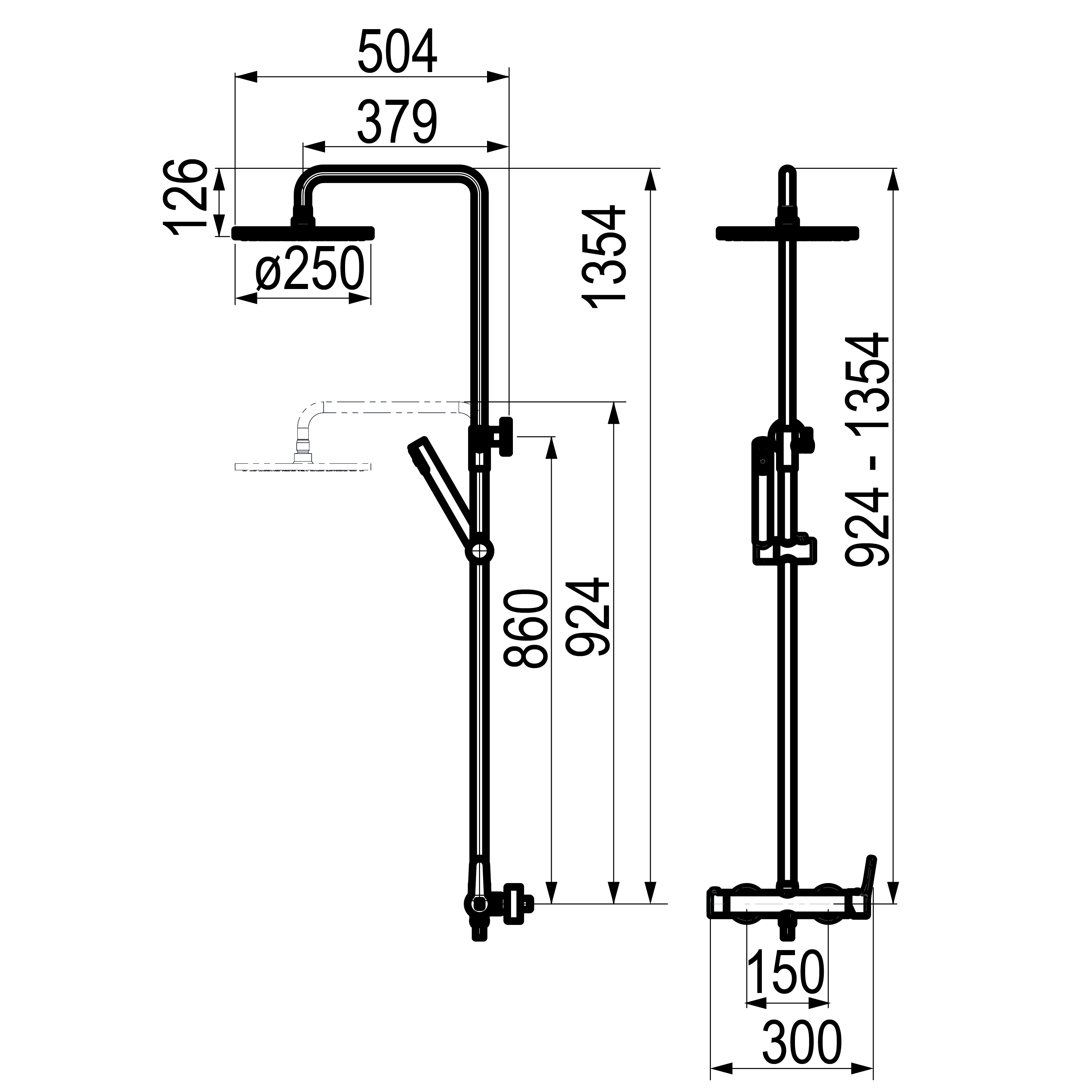 Grifo fabricado en latón disponible en acabado cromo o negro. Caudal 14 l/min a 3 bar y máxima apertura. Entrada G3/4 hembra. Temperatura admisible de agua: los materiales que componen las piezas de los grifos pueden soportar una temperatura máxima de 70ºC. Suministrado con rociador de diámetro 250 mm en ABS, flexo en PVC, maneral de ducha 1 función. Columna regulable en altura (telescópica). Presión mínima de uso: 0,5 bar. Cartucho sellado mezclador con discos cerámicos de diámetro 35 mm. Accionamiento mediante maneta monomando.