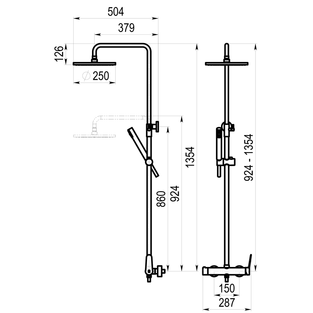 Rociador Ø250 mm ABS,flexo inox y maneral Futura 1 f.