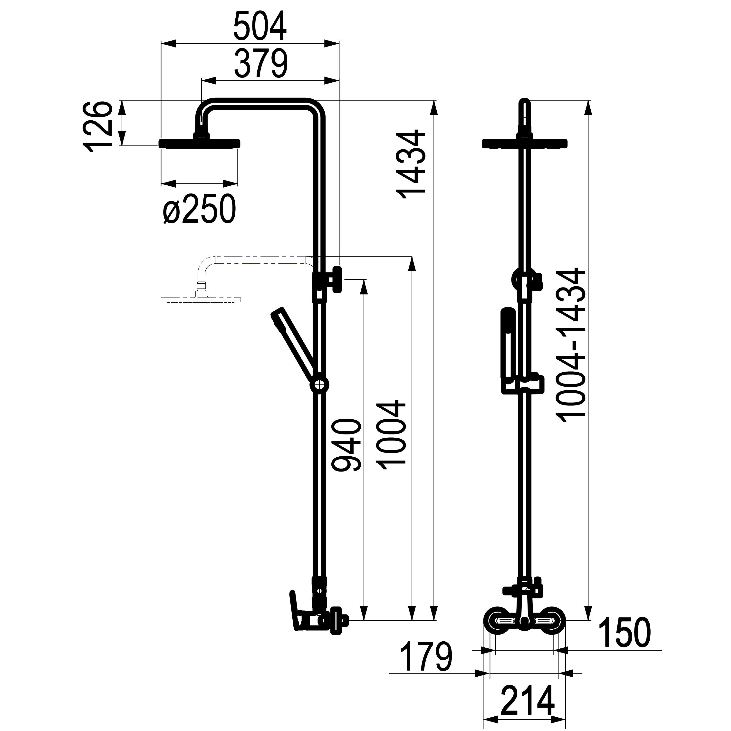 Rociador Ø250 mm ABS,flexo inox y maneral Futura 1 f.