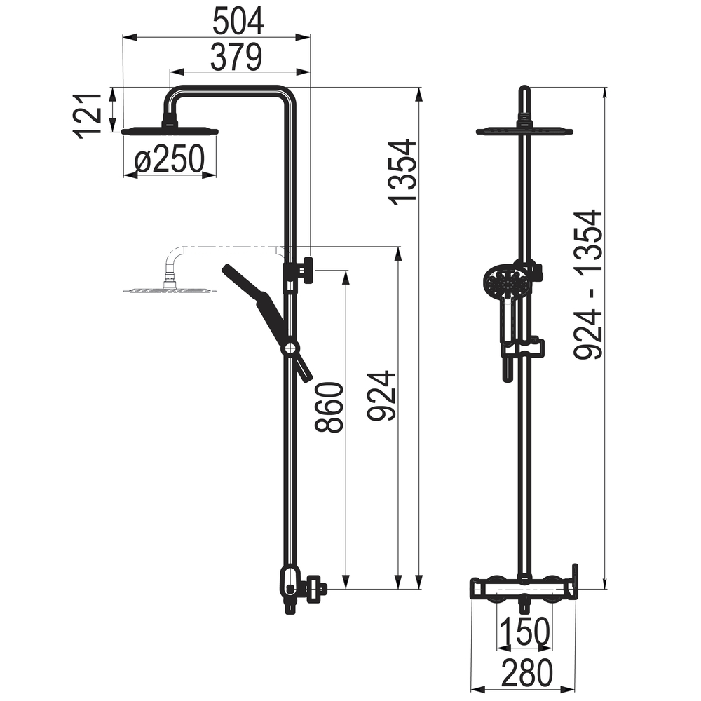 Columna ducha mezcladora Nine rociador 250 mm inox y flexo pvc