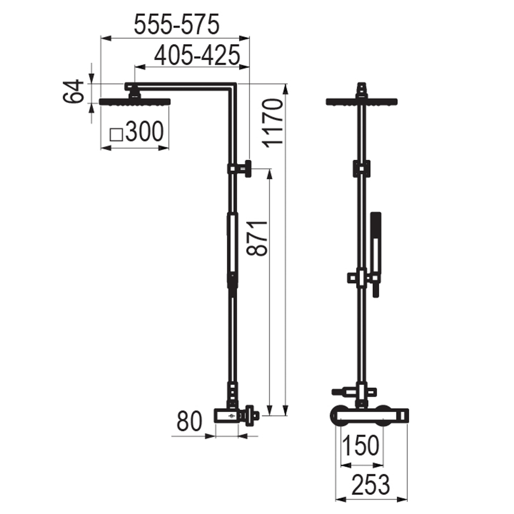 Columna ducha mezcladora Nitro Plus rociador 300 mm y flexo pvc