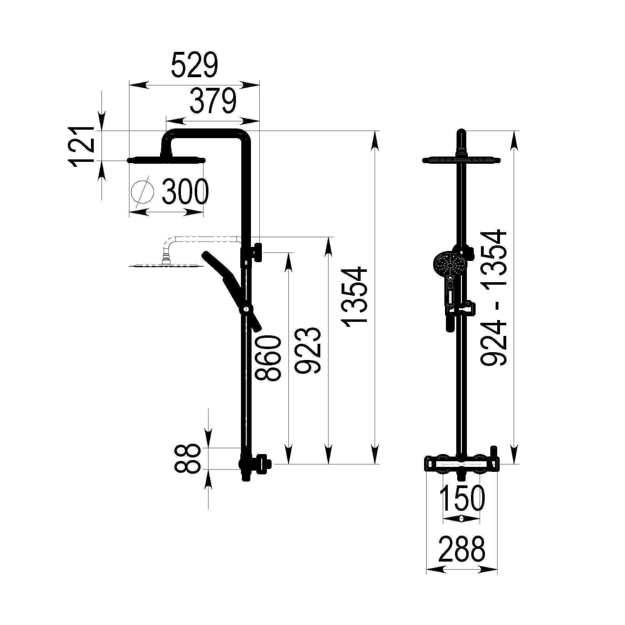 Columna ducha mezcladora Theo rociador 300 mm inox y flexo pvc