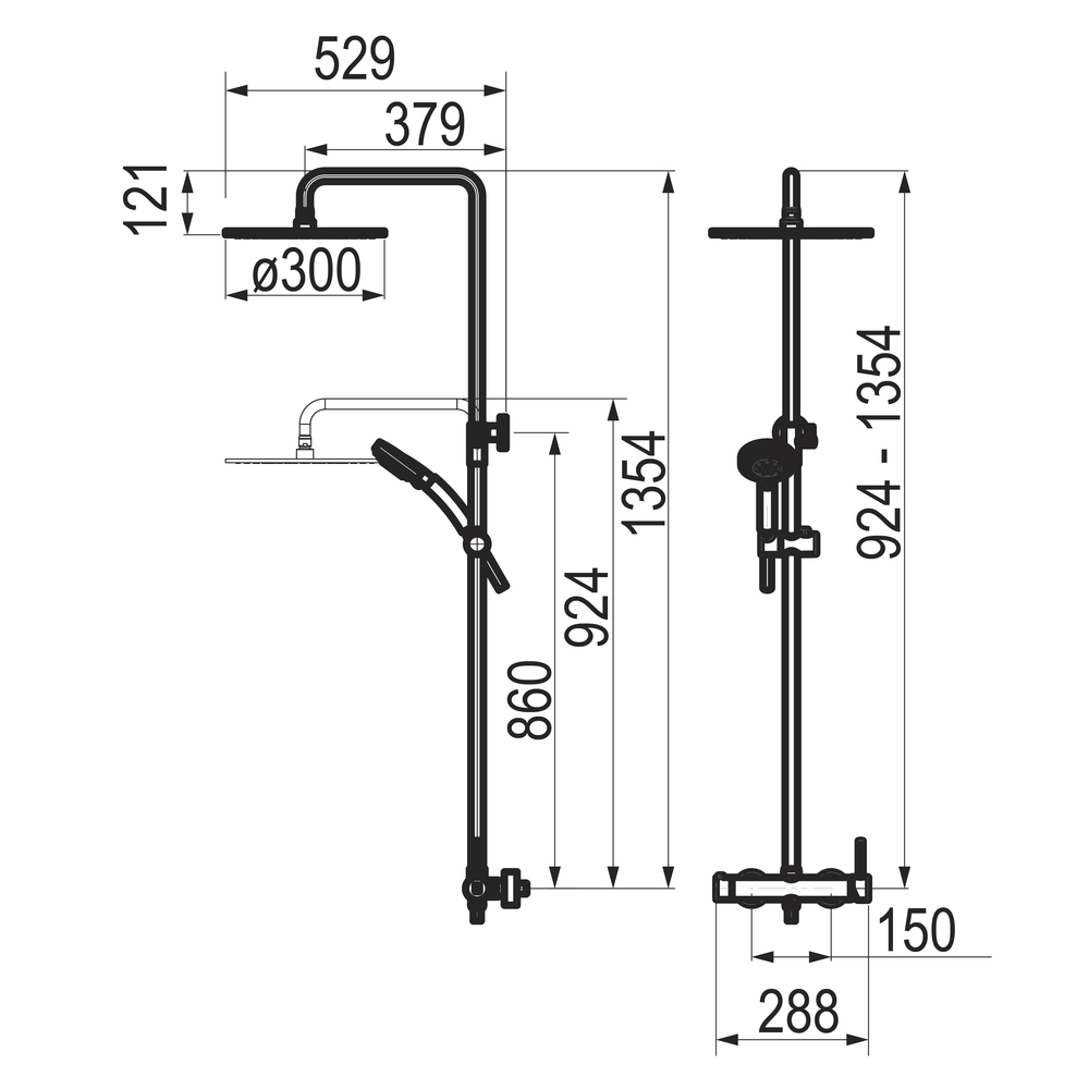 Columna ducha mezcladora Theo rociador 300 mm latón y flexo pvc oro cepillado