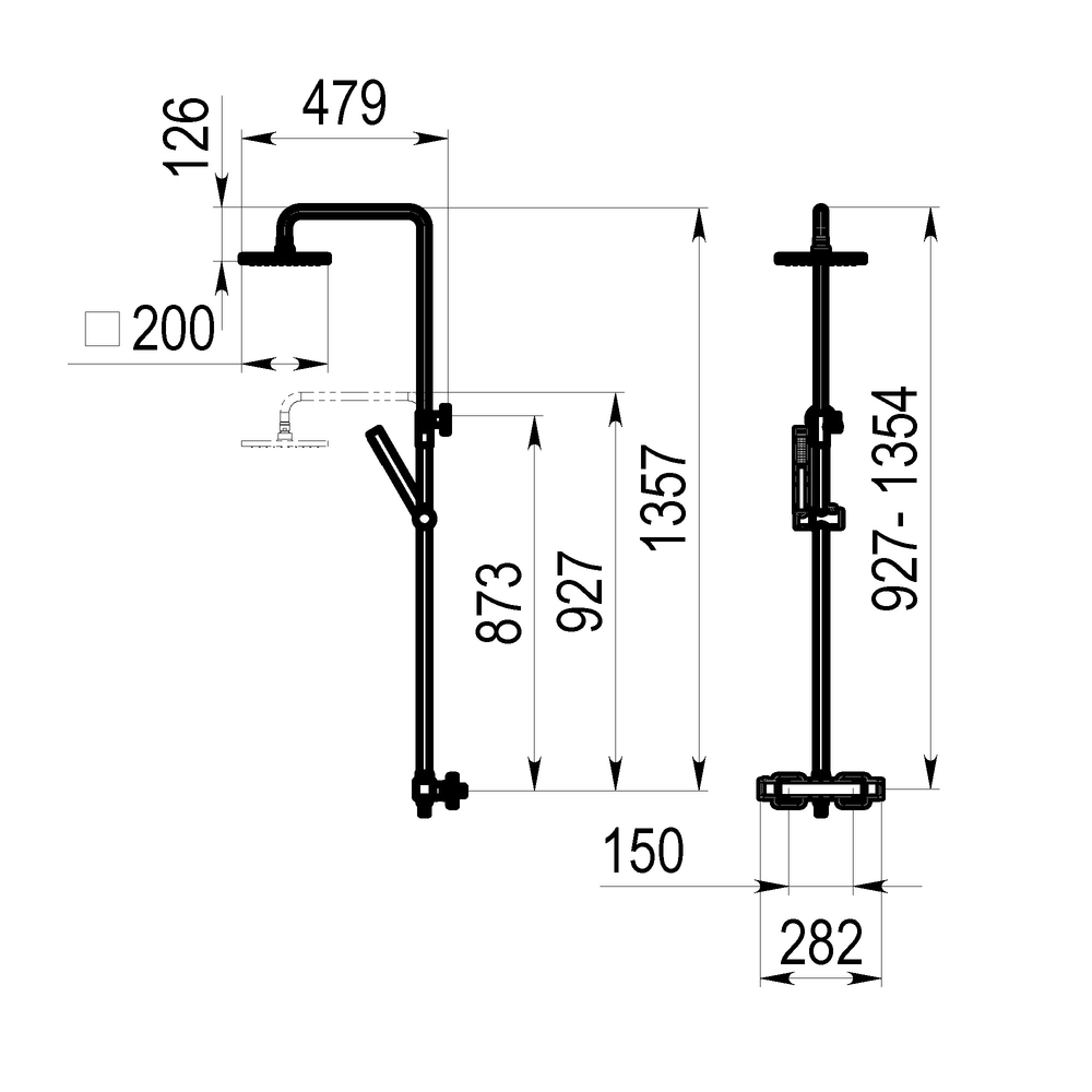 Columna ducha termostática Koa rociador 200 mm abs, flexo inox y maneral nitro 1 función cromo