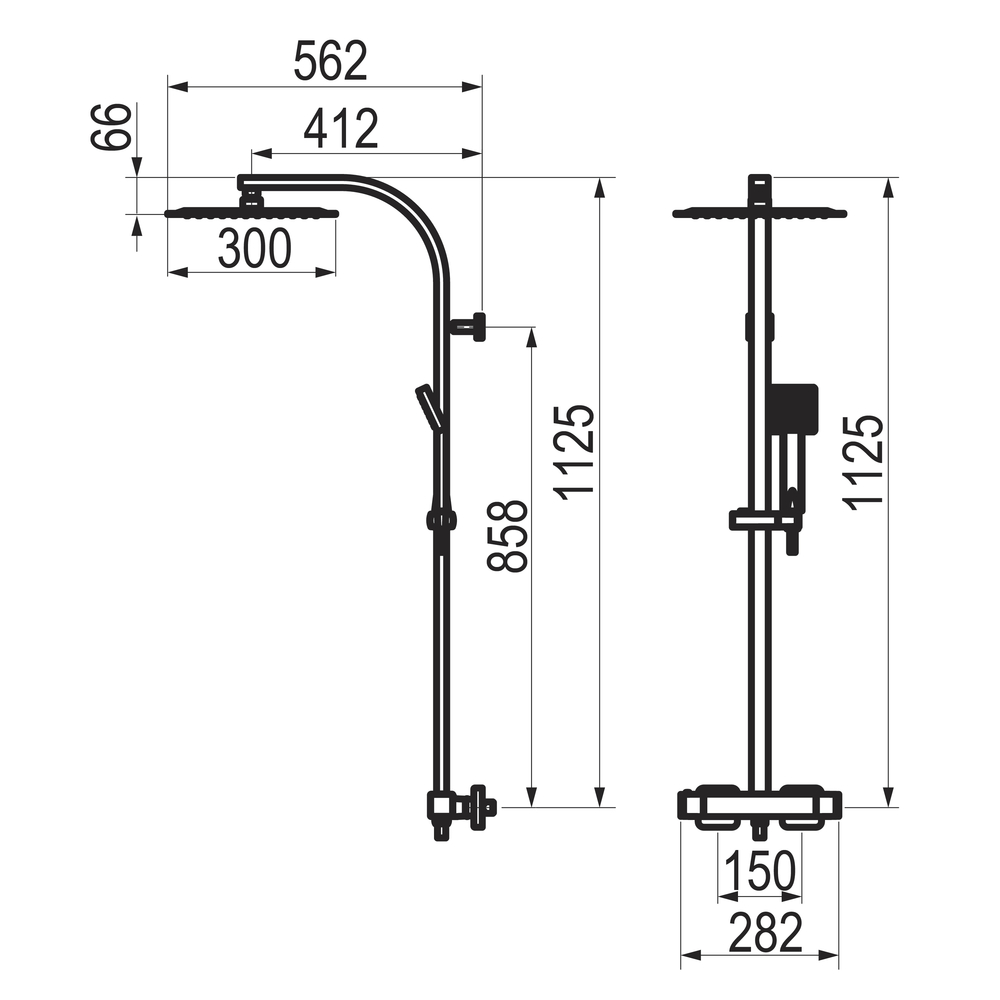 Columna ducha termostática Nitro Plus negro rociador 300 mm inox,flexo pvc y maneral nitro plus 1 función negro