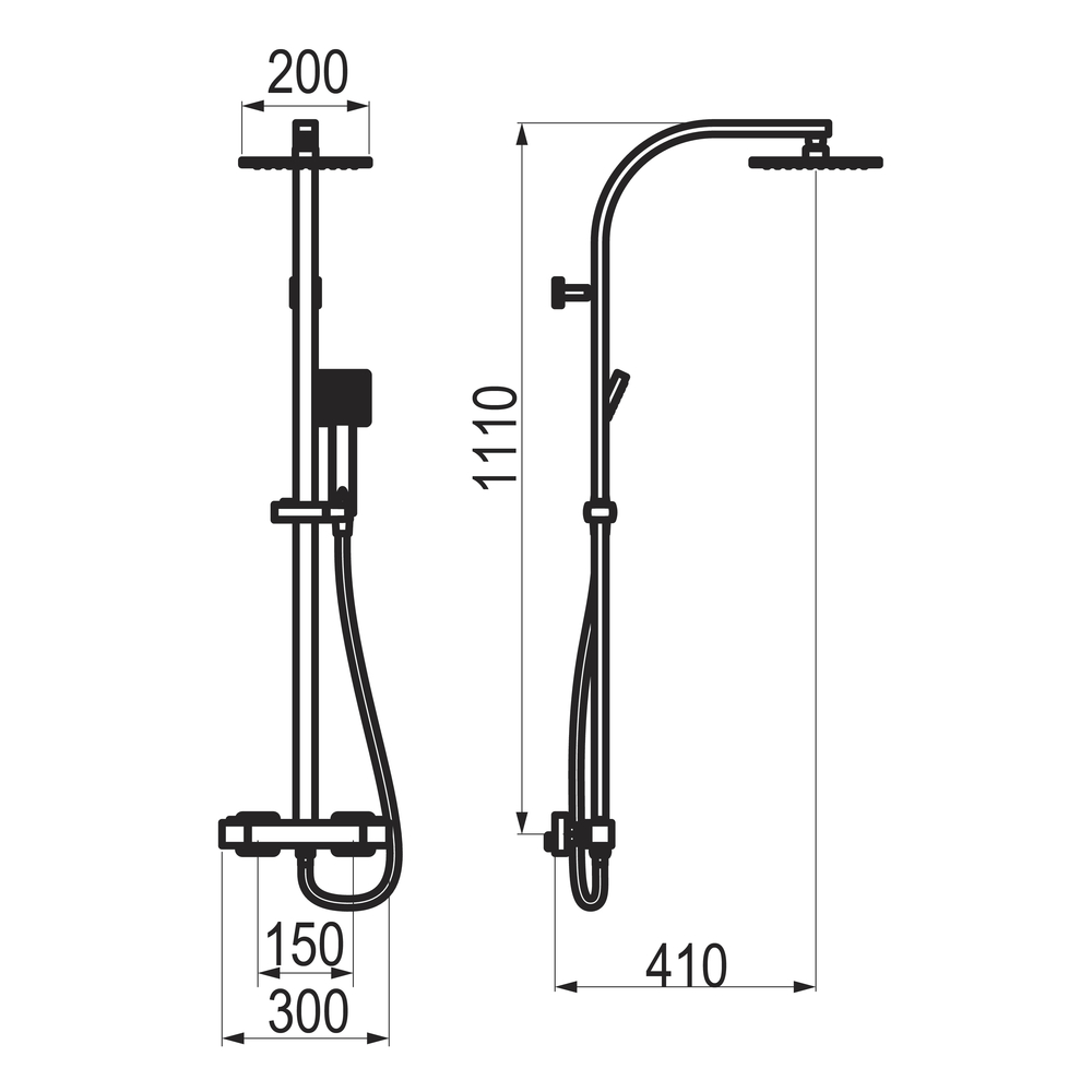 Columna ducha termostática Nitro Plus rociador 200 mm latón,flexo pvc y maneral nitro plus 1 función cromo