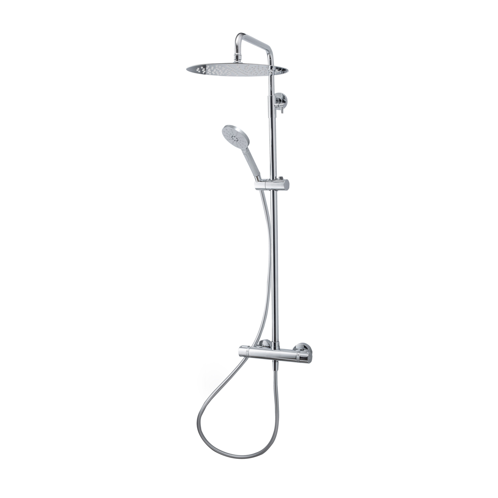 Columna ducha termostática Pysa lux blanco rociador 300 mm inox,flexo pvc y maneral aroha 3 funciones blanco.