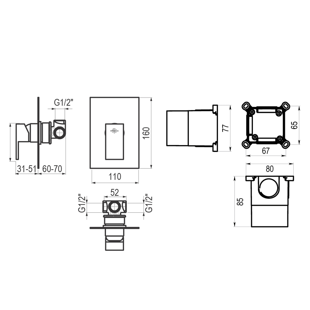 Conjunto ducha empotrable 1 vía Nitro Plus