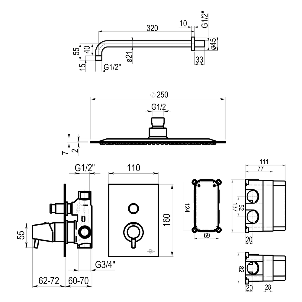 Grifo fabricado en latón con acabado cromado o negro, según modelo. Selección de salida mediante inversor. Placa embellecedora regulable. Entrada y salida G1/2 hembra. Temperatura admisible de agua: los materiales que componen las piezas de los grifos pueden soportar una temperatura máxima de 70ºC. Suministrado con placa embellecedora. Presión de uso recomendada: 1 5 bar. Cartucho sellado mezclador con discos cerámicos de diámetro 35 mm. Accionamiento mediante maneta monomando.
