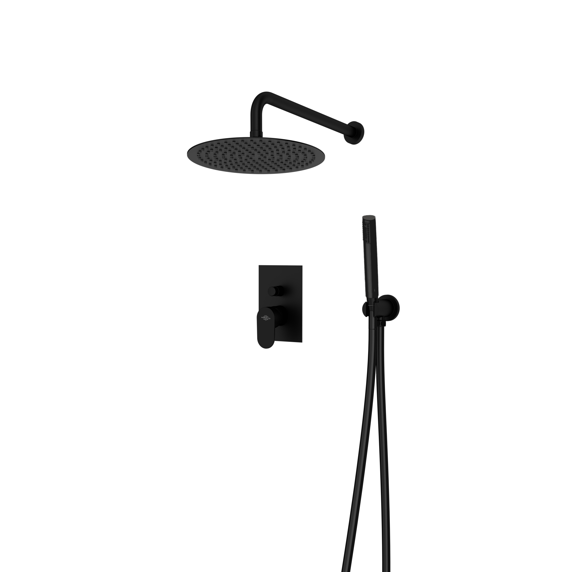 Conjunto de ducha monomando de 2 vías con grifo empotrado y accesorios de ducha.