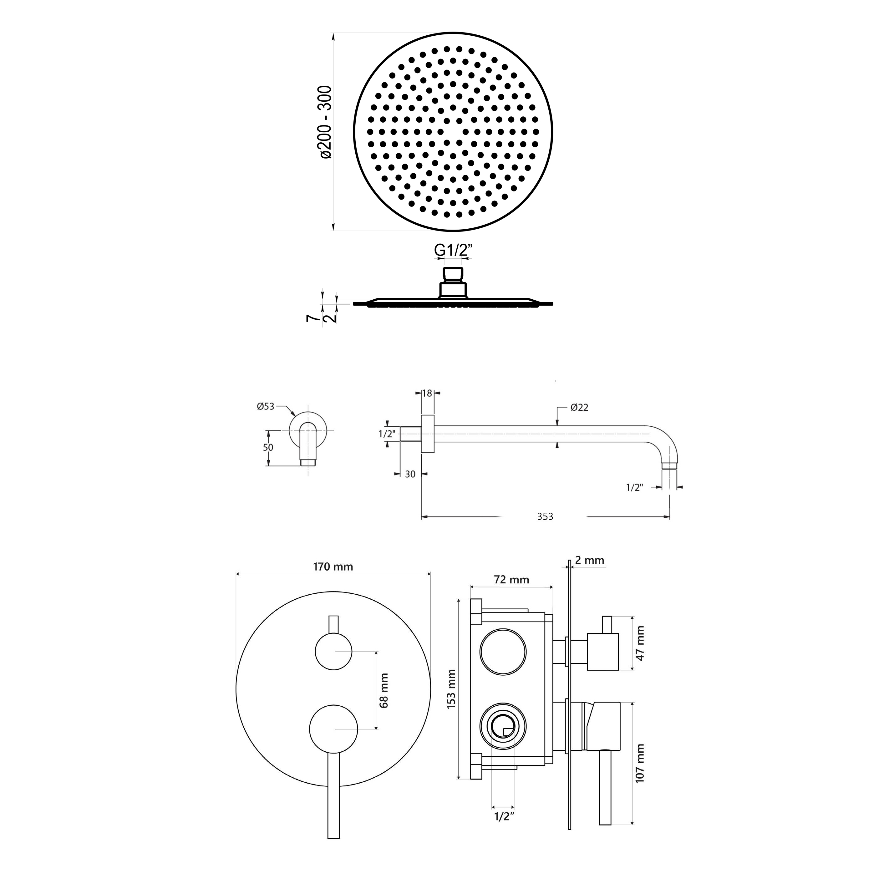 Conjunto ducha empotrable 2 vías Nox