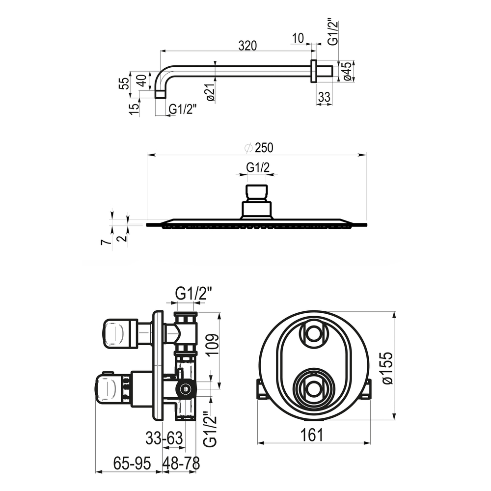 Conjunto ducha termostático empotrable Atlantis 2 entradas 1 salida redondo cromo
