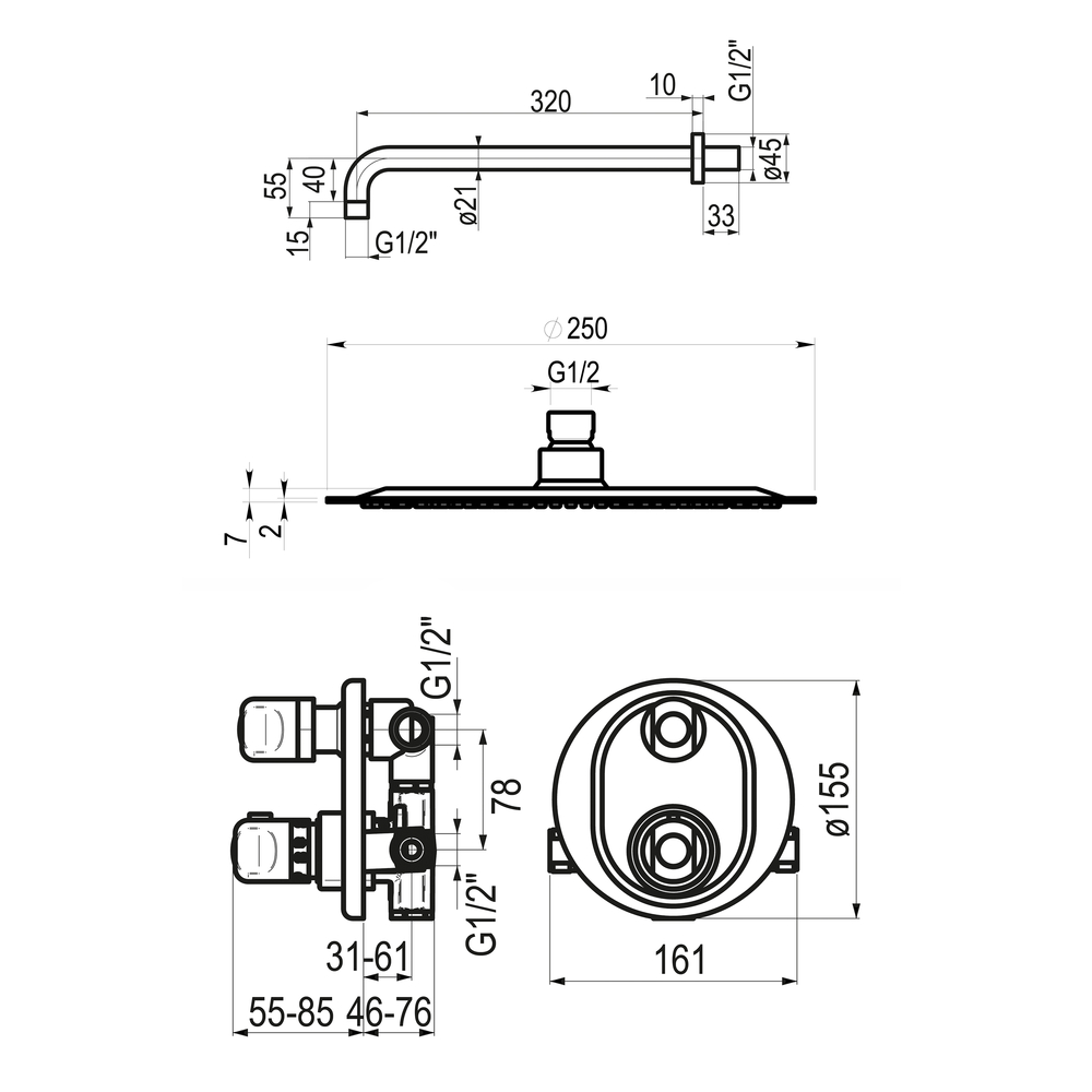Conjunto ducha termostático empotrable Atlantis 2 entradas 2 salidas redondo cromo