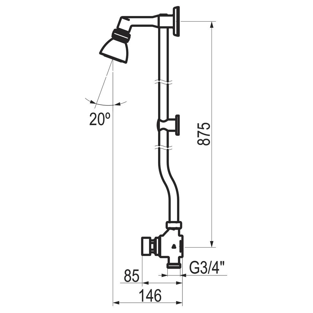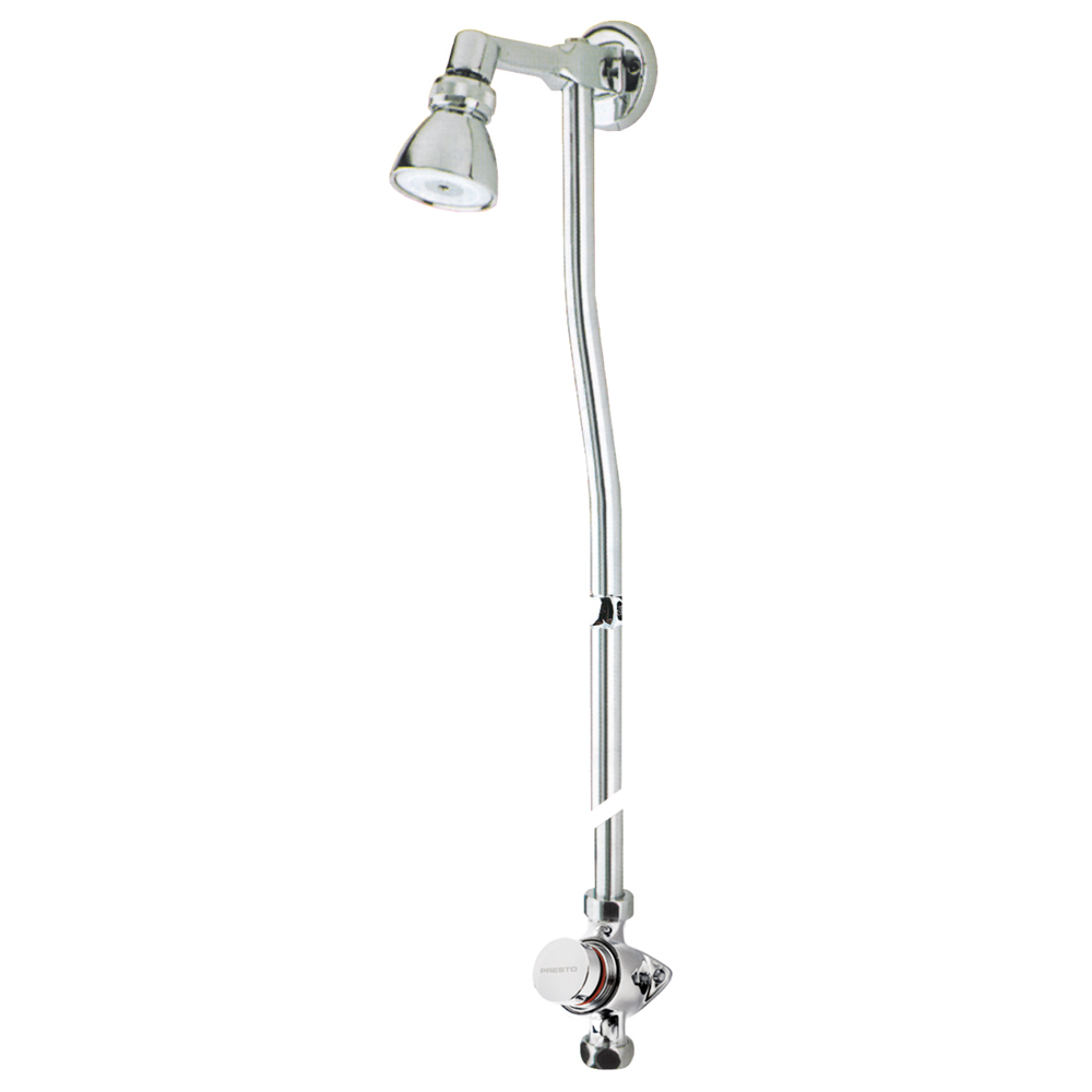 Conjunto de ducha temporizado de un agua para instalación mural con rociador orientable.