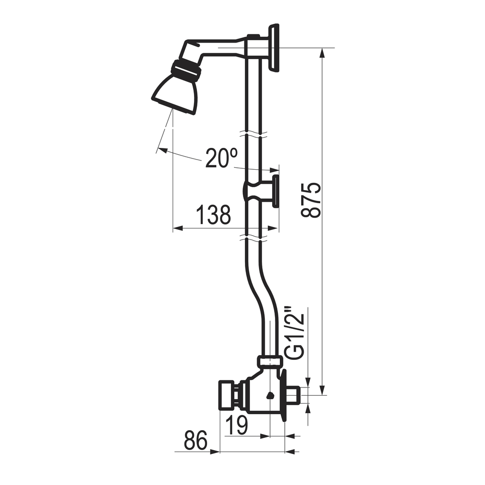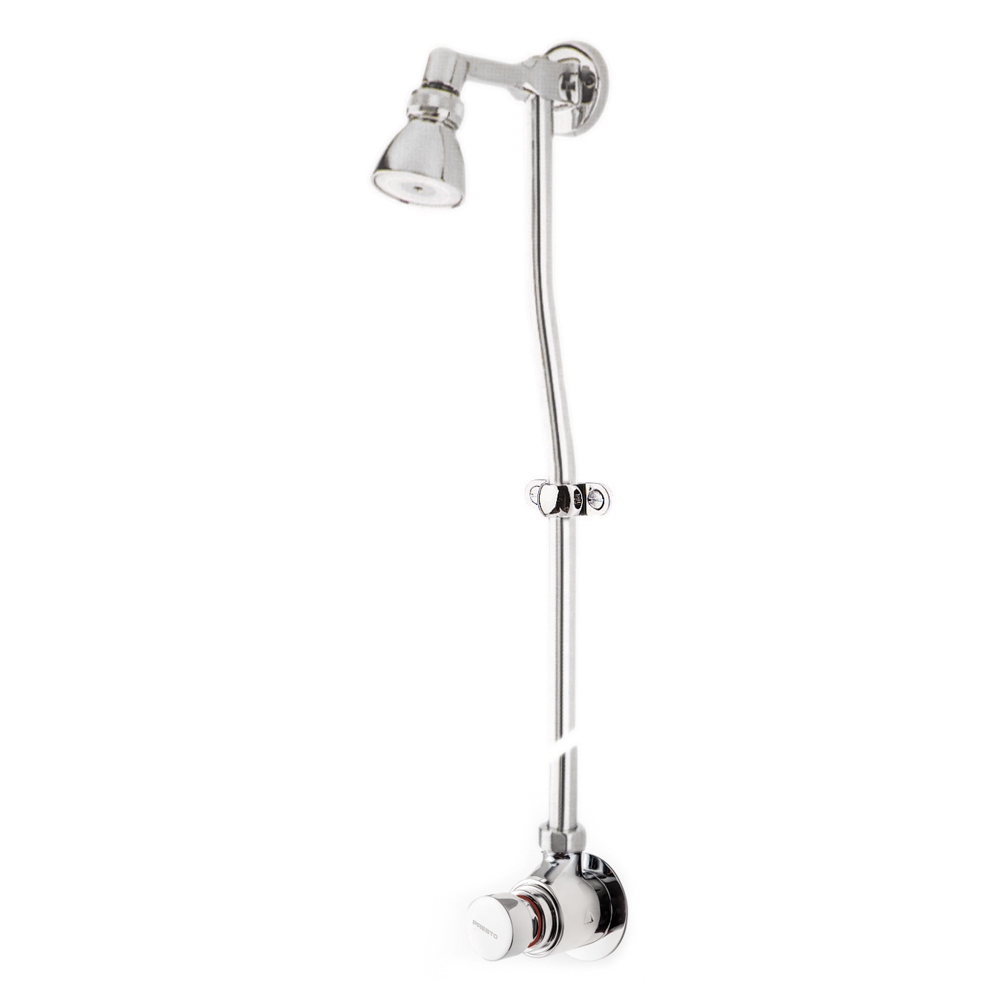 Conjunto de ducha temporizado de un agua para instalación mural con rociador orientable.