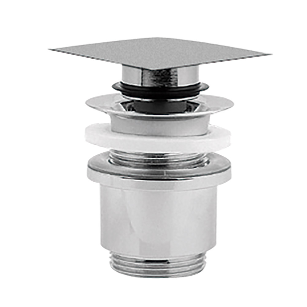 ^Desagüe Semiautomático tapón cuadrado. Acabados existentes: cromo y níquel.
