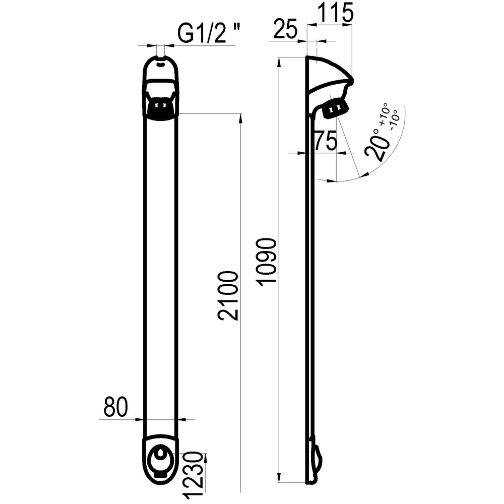 Entrada G3/4 con racor de G1/2 macho.