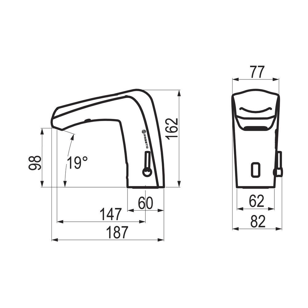 Grifo electrónico Sensia con célula de detección por sensor para lavabo mezclador, fijación sobre repisa.