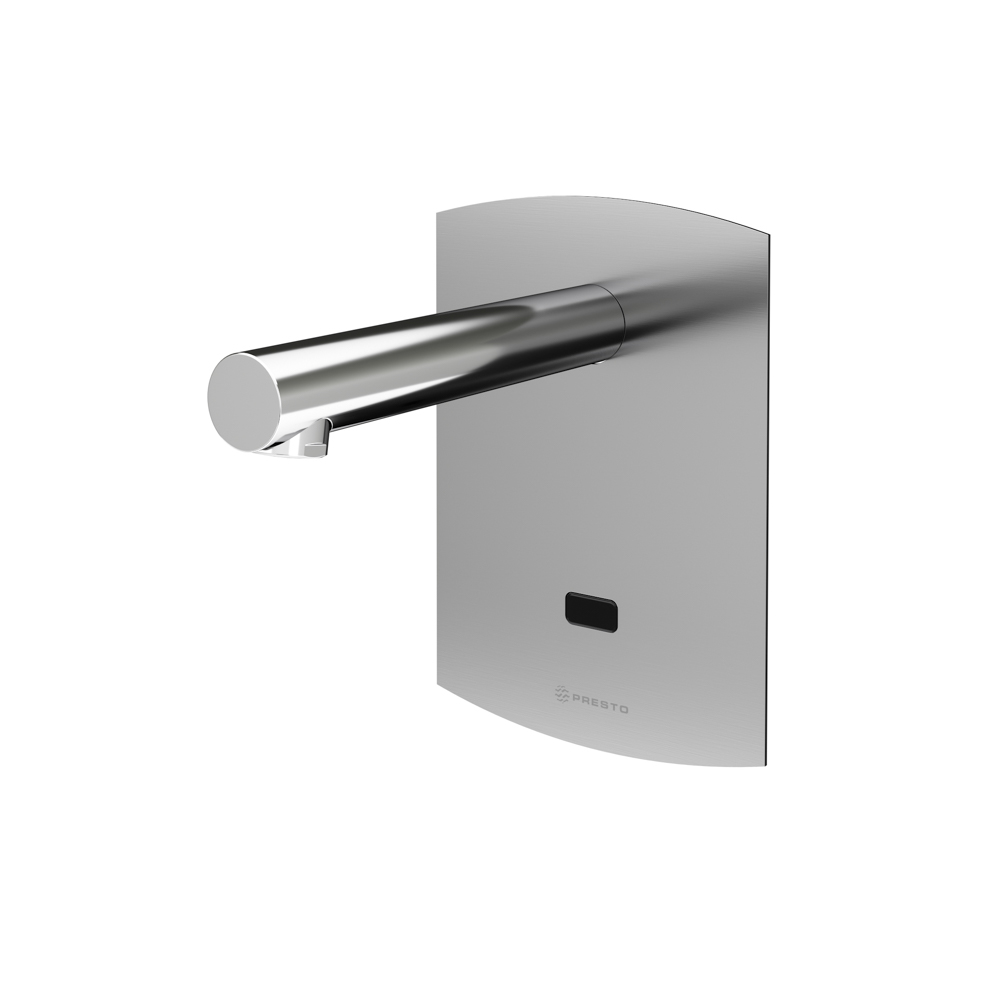 Grifo electrónico con célula de detección para lavabo un agua Presto Domo Sensia P con sensor e instalación mural.