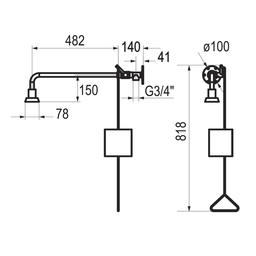 Ducha emergencia montaje a pared tubería vista