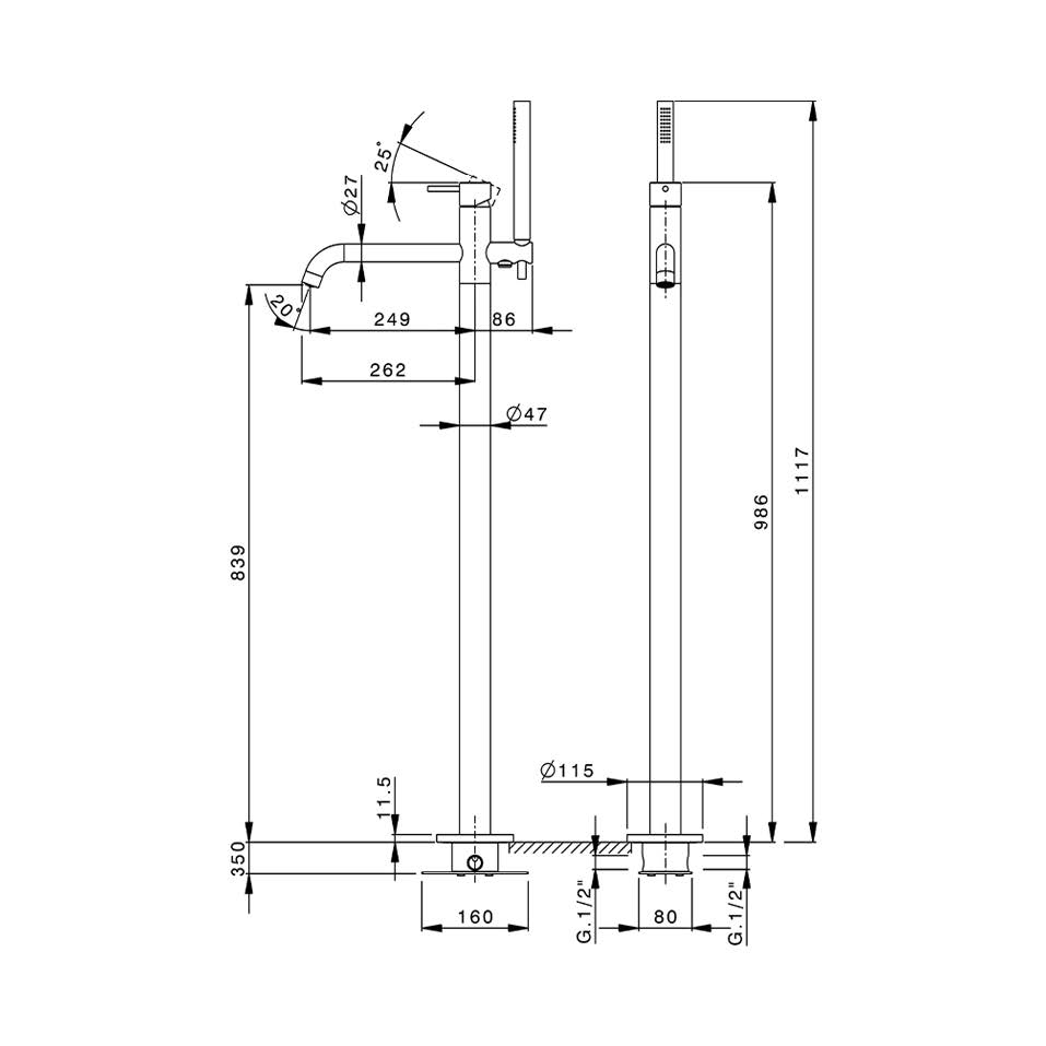 Grifo monomando baño-ducha pie bañera con accesorios ducha.