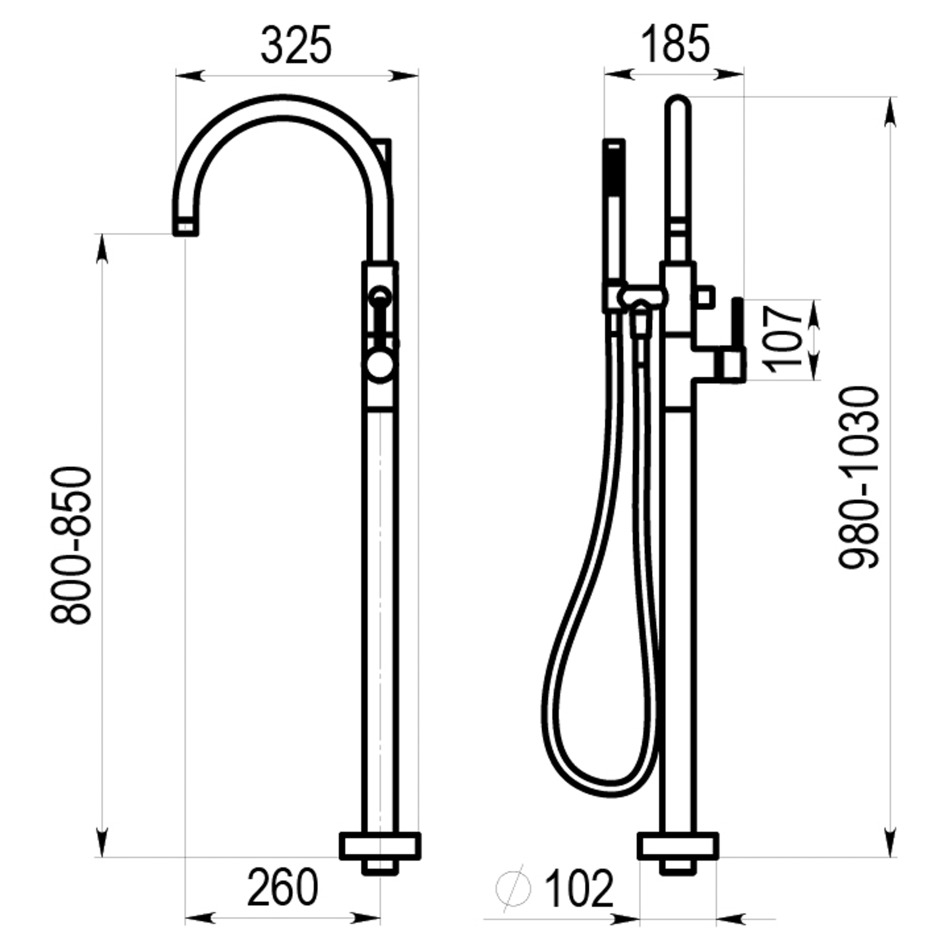 Grifo baño-ducha de pie Theo con accesorios cromo
