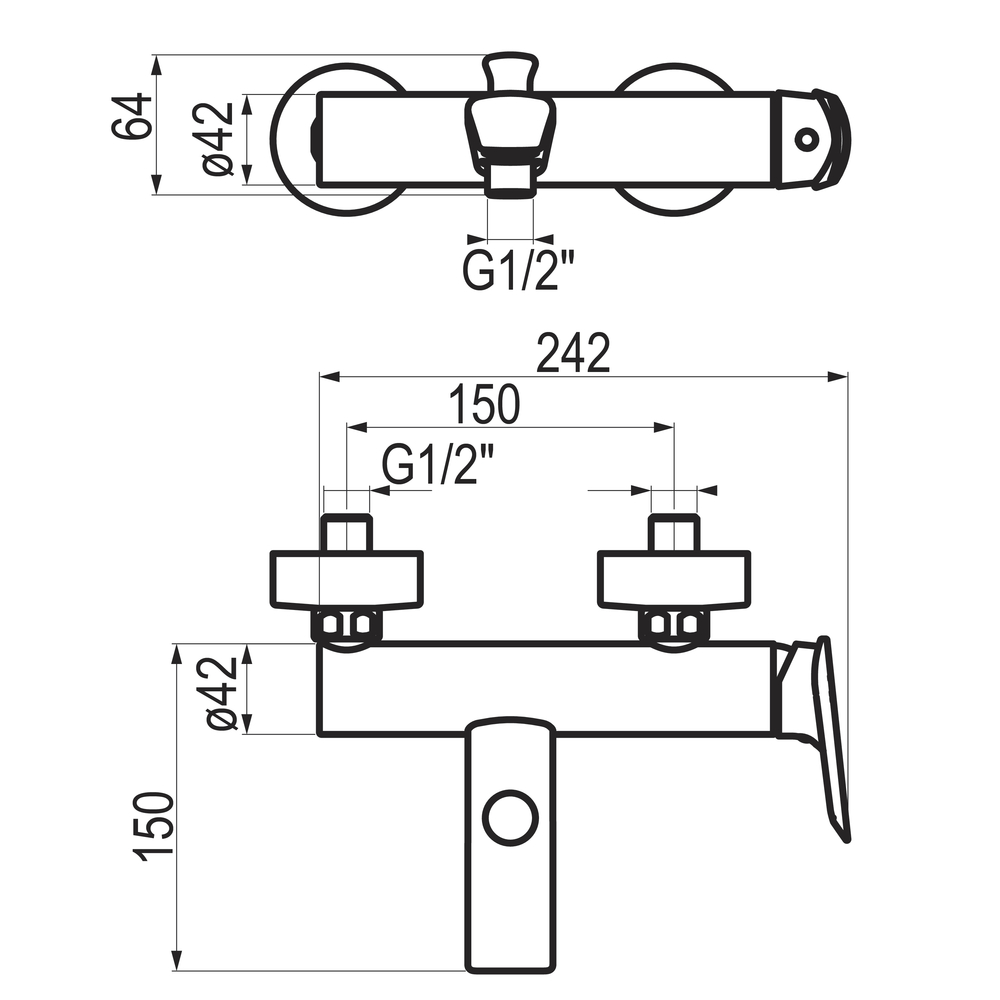 Grifo fabricado en latón con acabado cromado, blanco o negro. Presión mínima de uso: 0,5 bar. Accionamiento mediante maneta. Cartucho sellado mezclador con discos cerámicos de diámetro 35 mm. Disponible: Con accesorios de ducha o Sin accesorios de ducha.