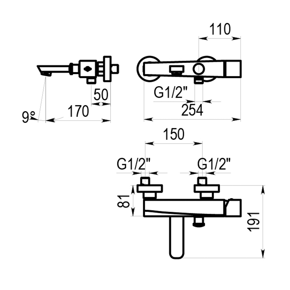 Grifo monomando de baño-ducha mezclador mural visto.