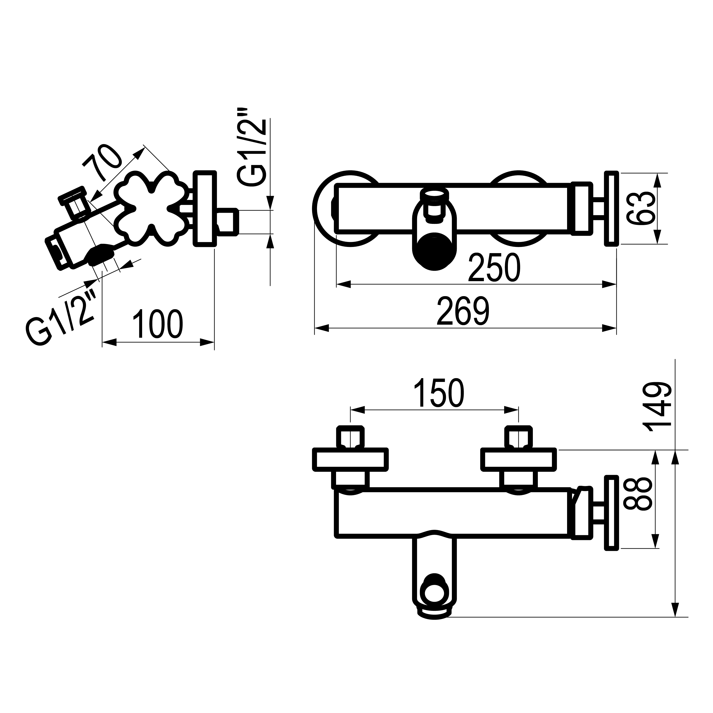 Grifo monomando de baño-ducha mezclador mural visto.