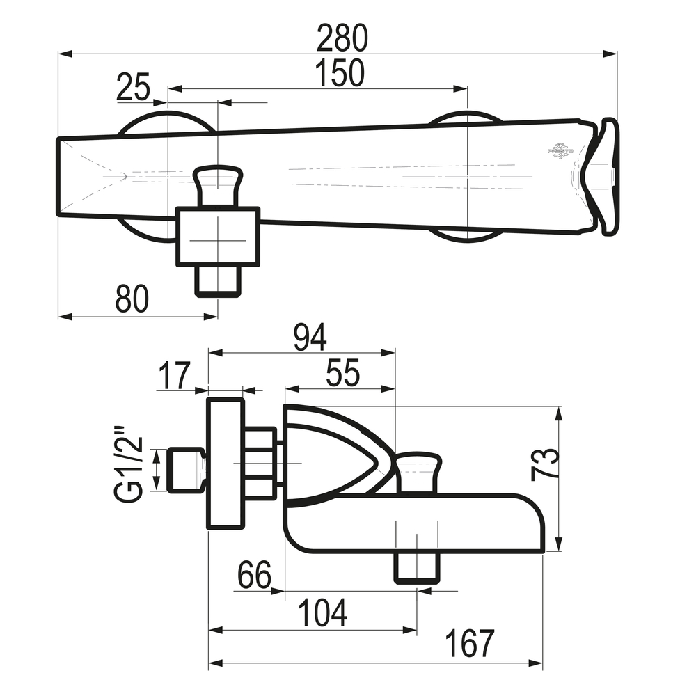 Grifo monomando de baño-ducha mezclador mural visto.