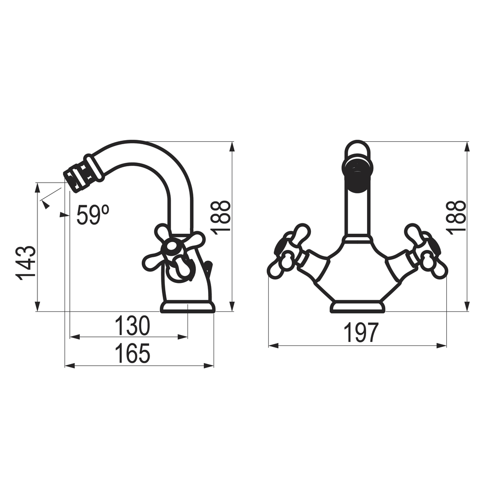 Grifo bimando bidet para instalación sobre repisa.