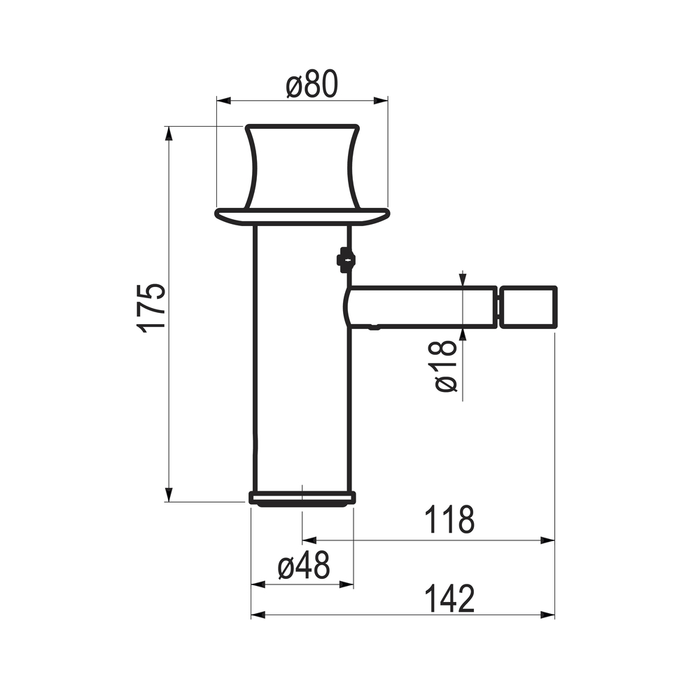 Grifo monomando bidet para instalación sobre repisa.