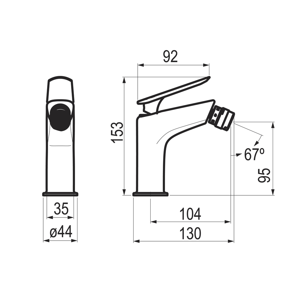Grifo monomando bidet para instalación sobre repisa.