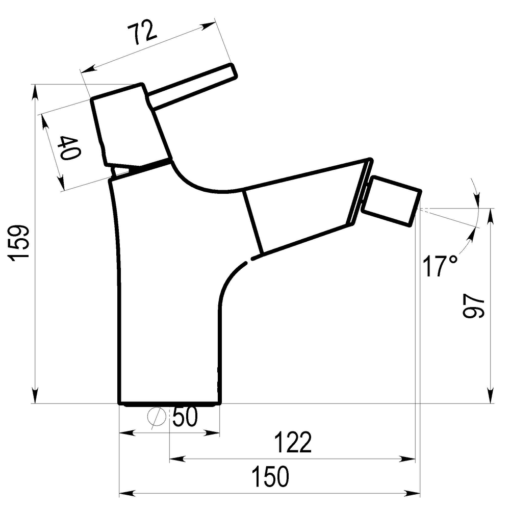 Grifo fabricado en latón con acabado cromado. Presión mínima de uso: 0,5 bar. Accionamiento mediante maneta. Cuerpo para instalación en un único orificio. Cartucho sellado mezclador con discos cerámicos de diámetro 35 mm.